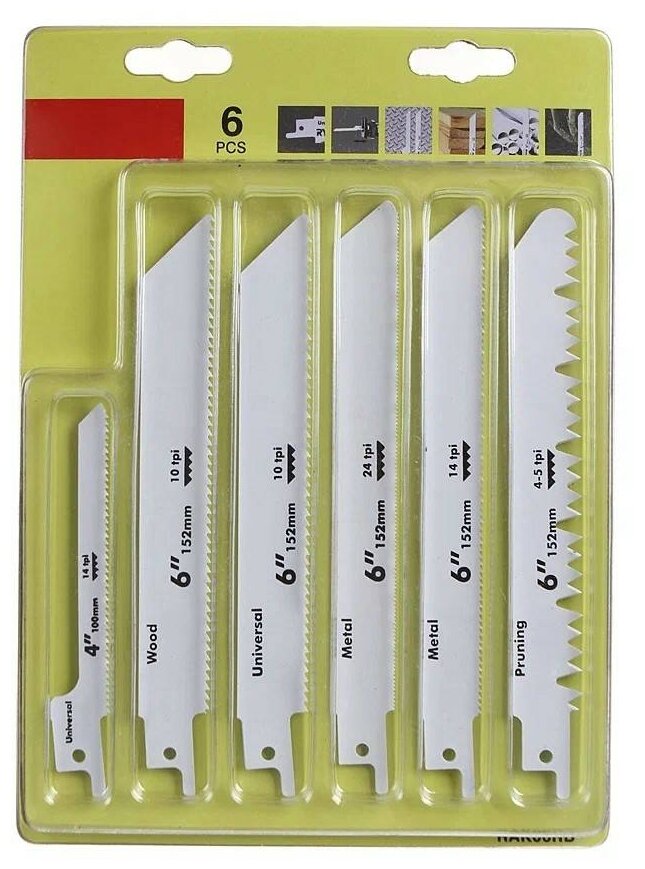 Type: saw blade, purpose: for reciprocating saw, length: 152 mm, production material: high-carbon steel, cut type: clean, processing material: universal