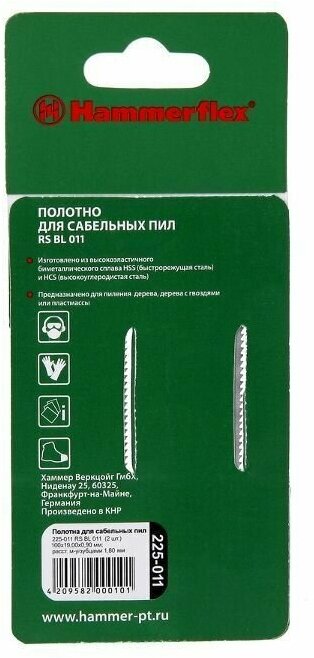Type: saw blade, purpose: for reciprocating saw, length: 100 mm, blade width: 19 mm, blade thickness: 0.90 mm, production material: bimetallic, processing material: wood, metal, tooth pitch: constant