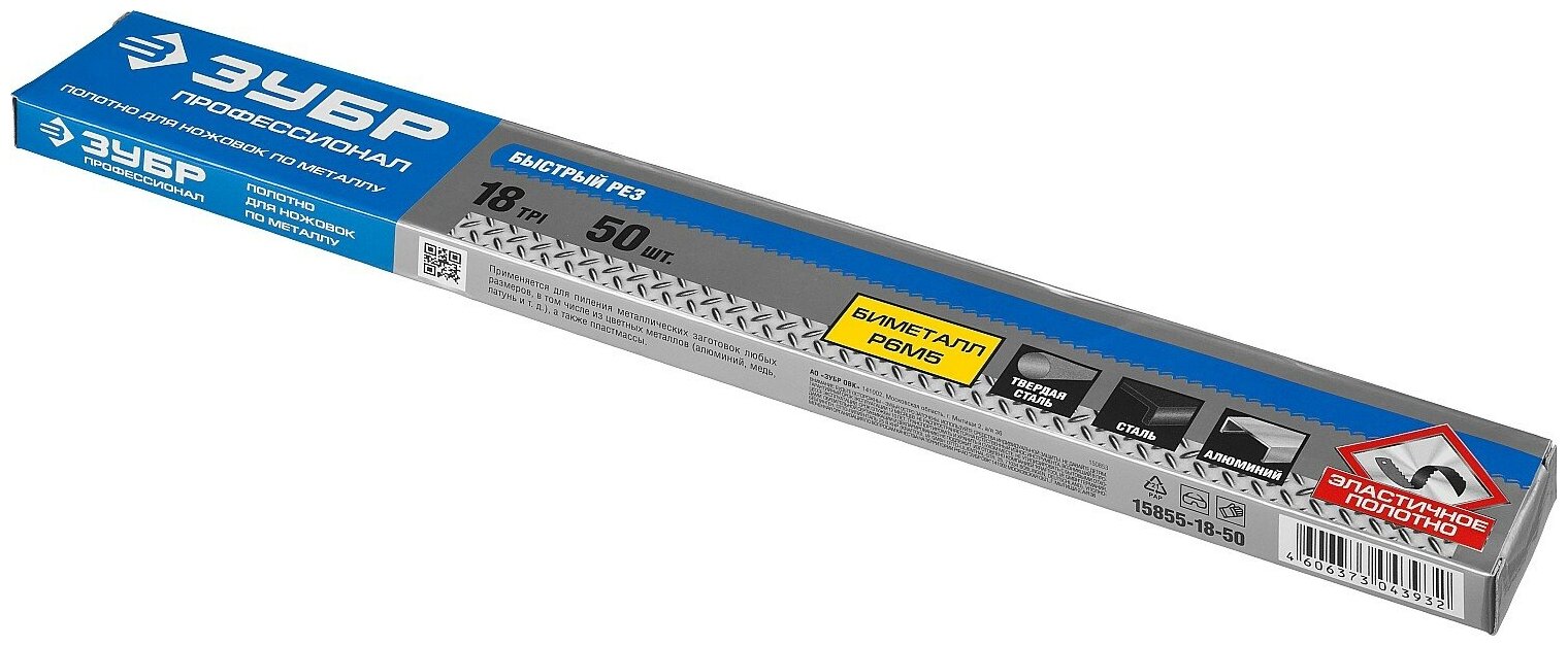 Bimetal blade for metal, 18 TPI: fast cut, 300 mm, high-quality high-speed steel R6M5, 50 pcs.