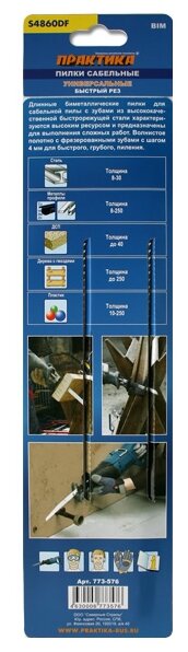 Type: saw blade, purpose: for reciprocating saws, length: 305 mm, blade thickness: 1.20 mm, maximum cutting thickness: 250 mm, material: high-carbon steel, processing material: universal, tooth pitch�