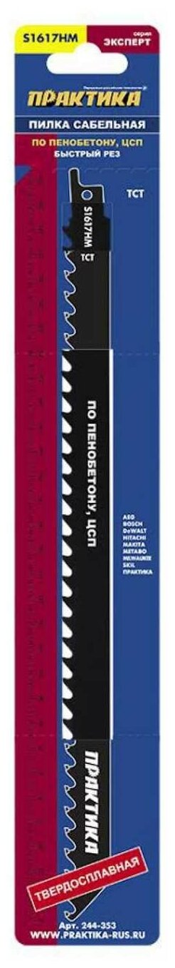 Type: saw blade, purpose: for reciprocating saws, length: 305 mm, blade thickness: 1.20 mm, maximum cutting thickness: 250 mm, material: high-carbon steel, processing material: universal, tooth pitch�