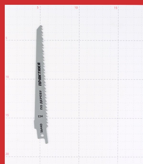 Type: saw blade, purpose: for reciprocating saw, length: 150 mm, blade width: 1.25 mm, production material: high carbon steel, cut type: clean, processing material: wood, tooth pitch: constant