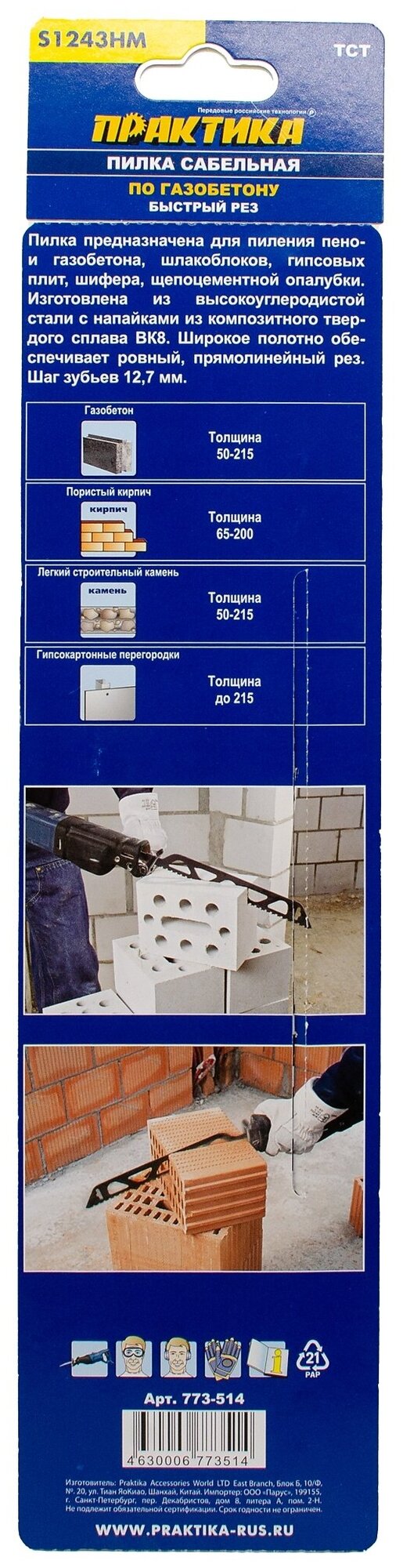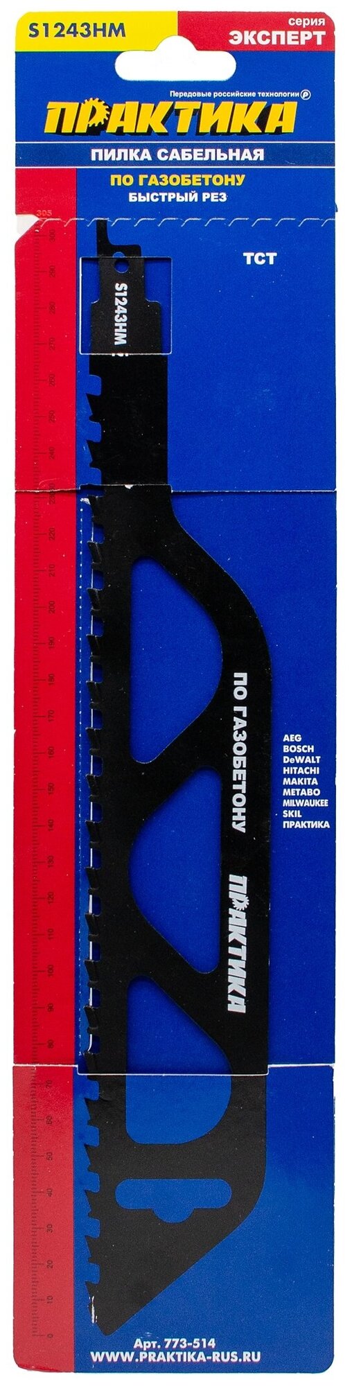 Type: saw blade, purpose: for reciprocating saw, length: 305 mm, production material: high-carbon steel, cutting type: fast, processing material: universal, tooth pitch: constant