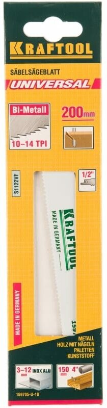 Type: saw blade, purpose: for reciprocating saws, length: 200 mm, material: bimetal, processing material: universal, tooth pitch: variable