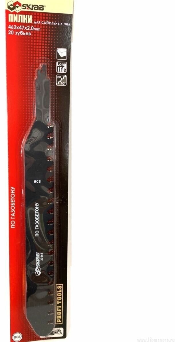 Type: saw blade, purpose: reciprocating saw, length: 462 mm, blade width: 47 mm, blade thickness: 2 mm, production material: high carbon steel, processing material: aerated concrete