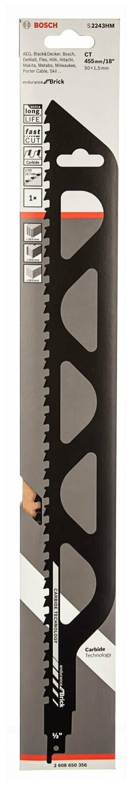 Type: saw blade, purpose: for reciprocating saw, length: 450 mm, blade width: 50 mm, blade thickness: 1.50 mm, maximum cutting thickness: 365 mm, production material: high carbon steel, cutting type: fast, material