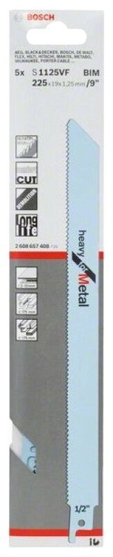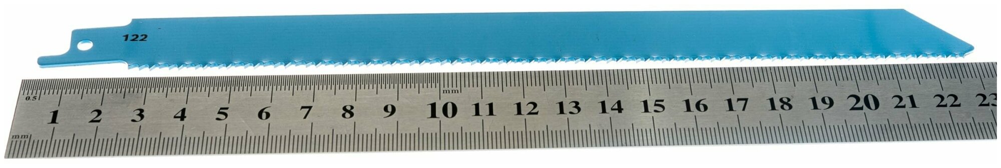 Type: saw blade, purpose: for reciprocating saw, length: 225 mm, blade width: 19 mm, blade thickness: 1.25 mm, production material: bimetal, processing material: metal, tooth pitch: variable