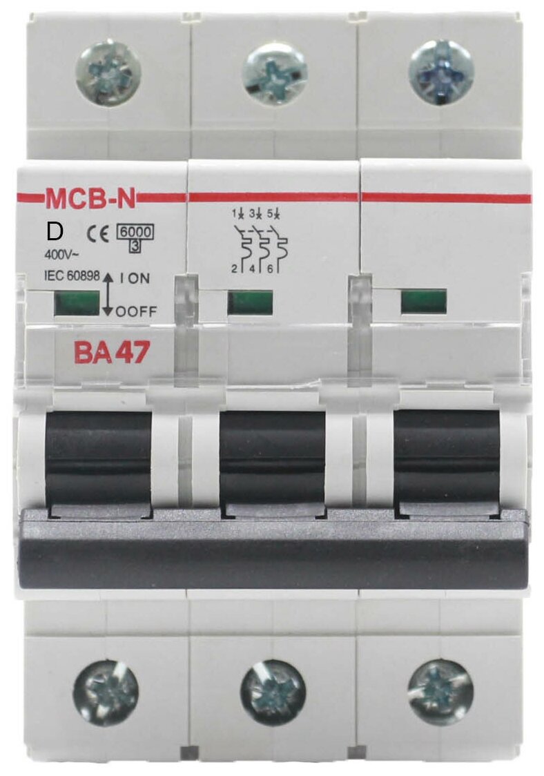 Type: circuit breaker, breaking capacity: 6 kA, rated voltage: 220/380 V, bus connection, voltage type: AC, trip type: D, protection class: IP20, DIN rail mounting