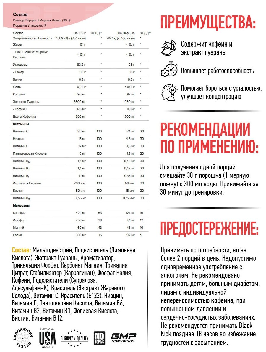 Main ingredients: caffeine, form of release: powder, dietary features: no aspartame, no gluten, no lactose, no maltodextrin, no sucralose, lactose content: none