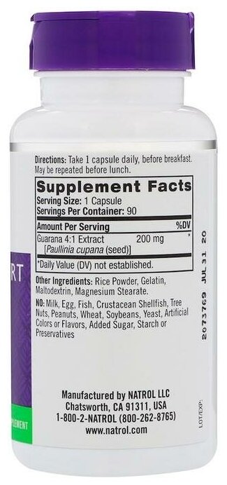 Natrol Guarana Pre Workout 200mg 90 Capsules