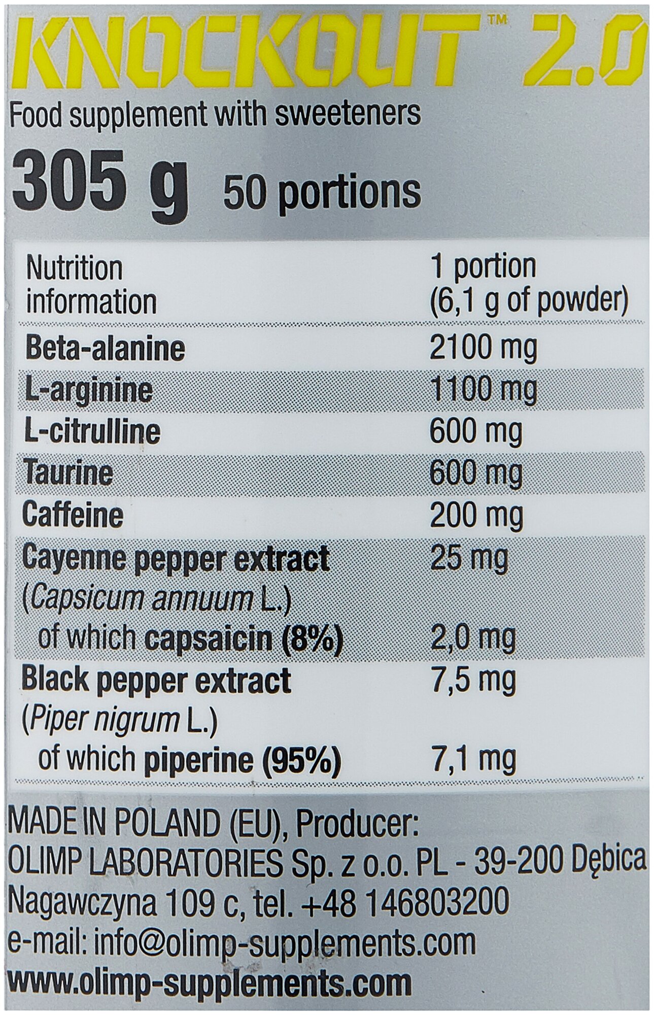 Main ingredients: arginine, beta-alanine, formulation: powder, dietary features: no aspartame, no gluten, no lactose, no maltodextrin, vegan, vegetarian, lactose content: none