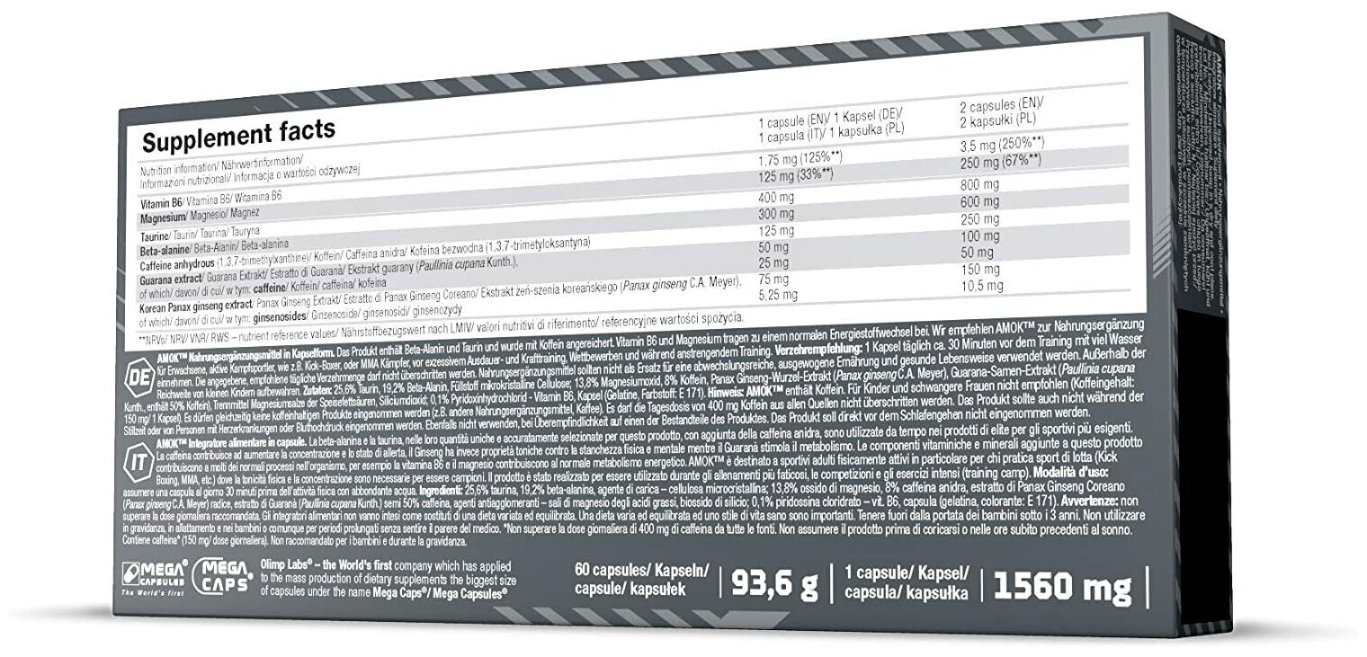 Main ingredients: taurine, dosage form: capsules/tablets