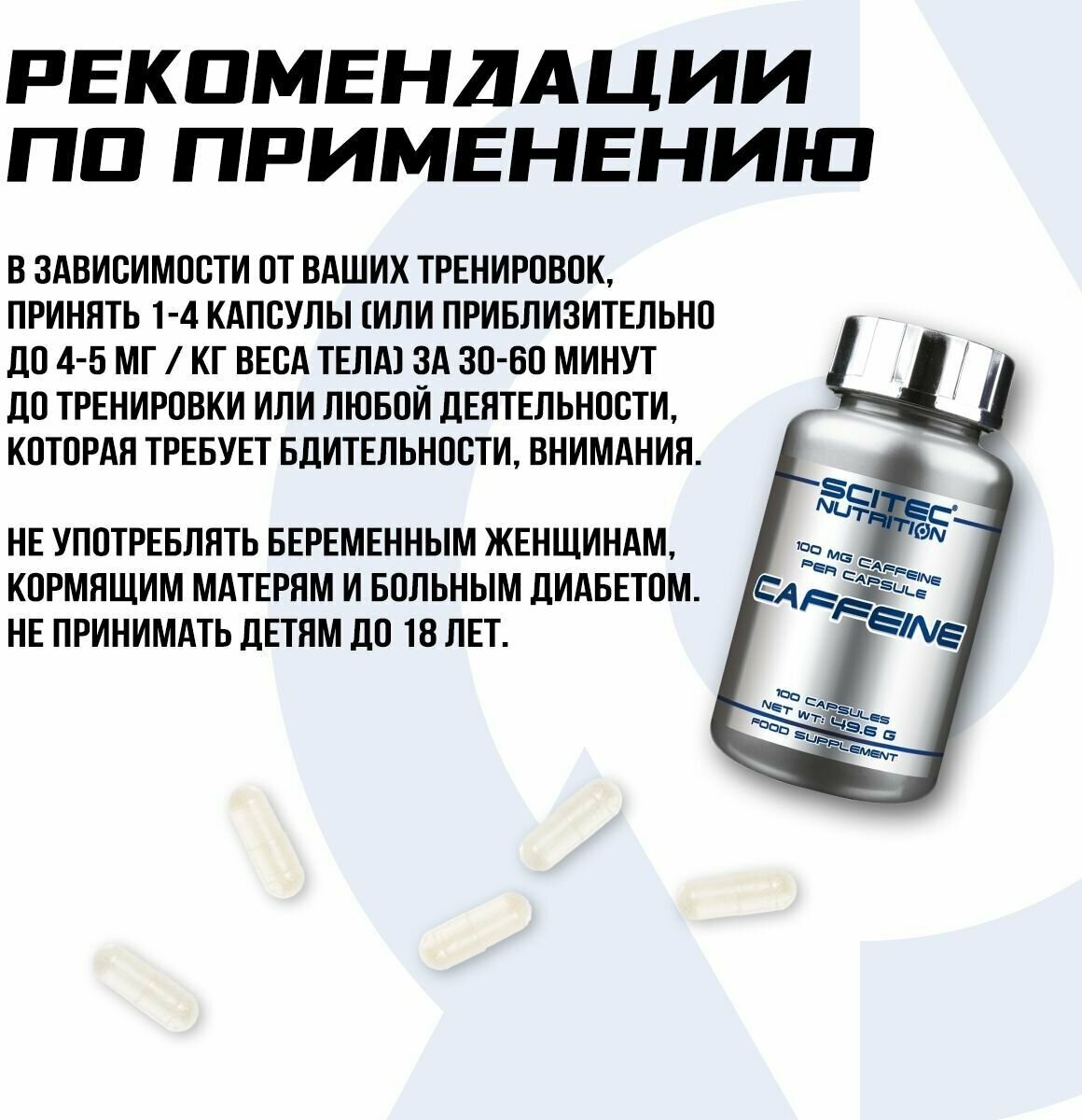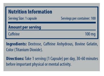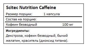 Recommendations for use: Take 1-2 servings 1-2 times a day at the rate of 4-5 mg of caffeine per 1 kilogram of your body weight.; composition: dextrose, caffeine anhydrate, gelatin