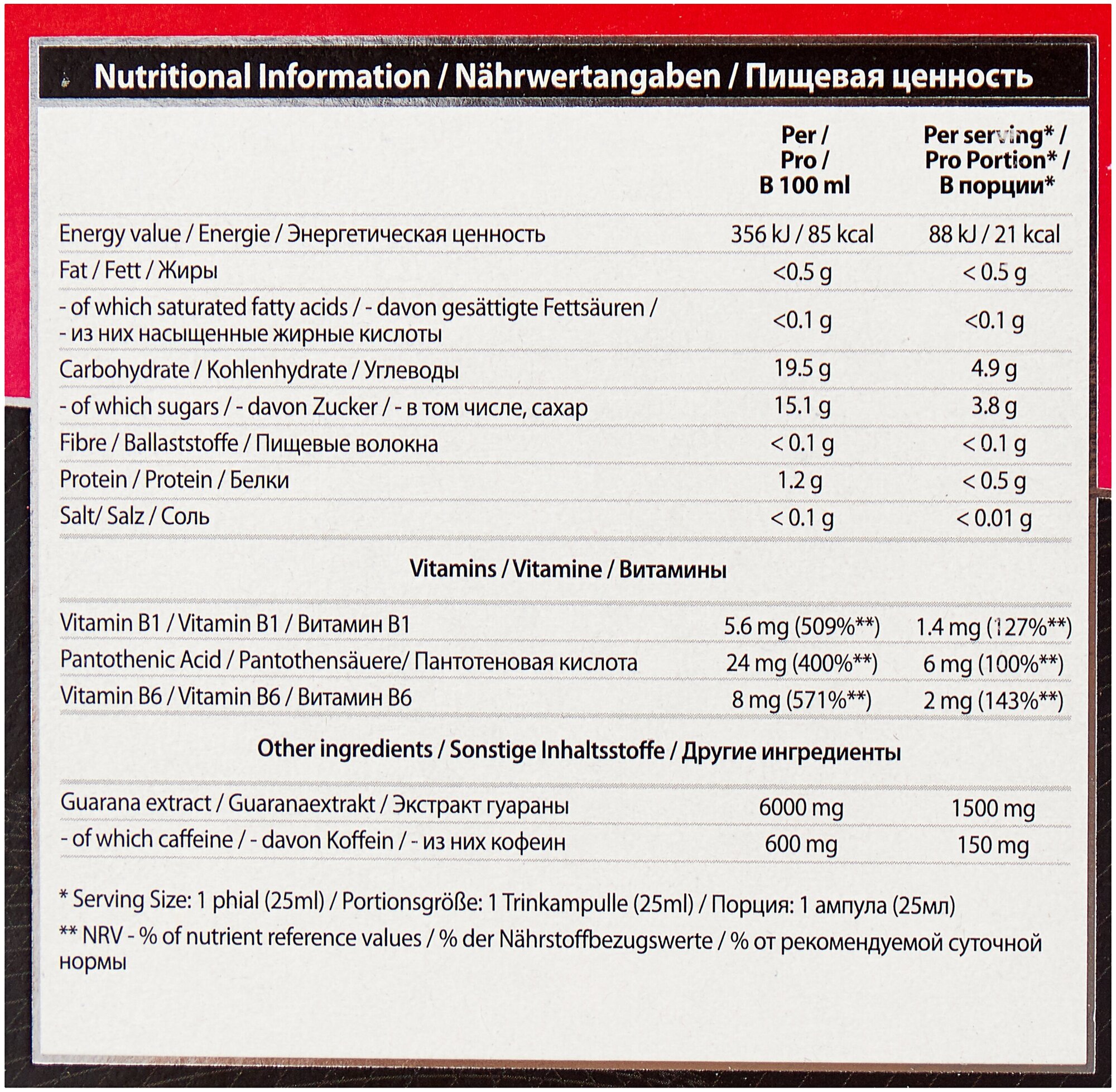 Main ingredients: caffeine, form of release: solution, dietary features: lactose-free, lactose content: none