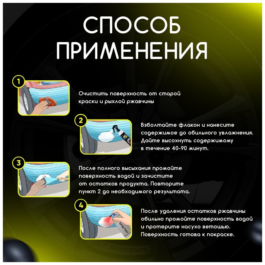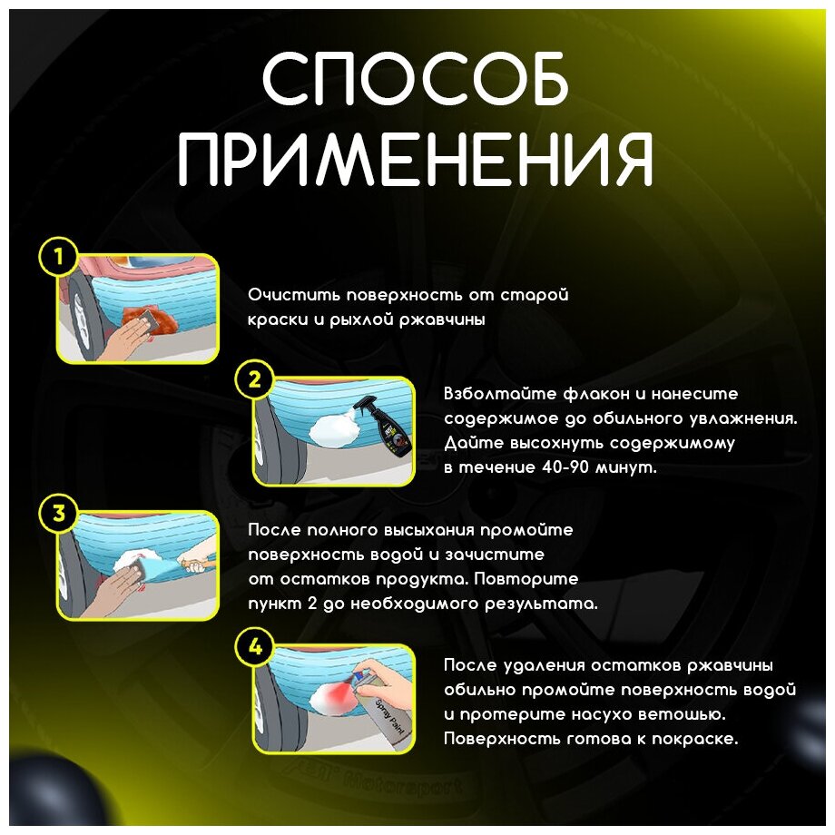 Apply by spray, leave for 40 - 90 minutes, then rinse with water using a stiff bristle brush.
