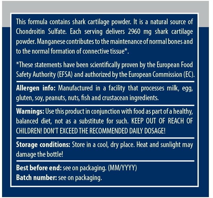 Main ingredient: shark cartilage, dosage form: capsules / tablets, for whom: for women, for men, for women, for men, purity: complex