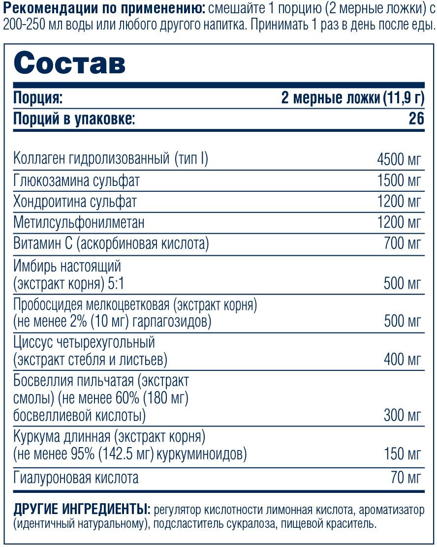 Main ingredient: MCM, hyaluronic acid, glucosamine, collagen, curcumin, chondroitin, cissus quadrangularis