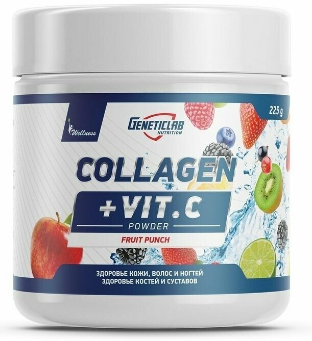 Collagen, GeneticLab Nutrition, Collagen + Vit.C, 225g.