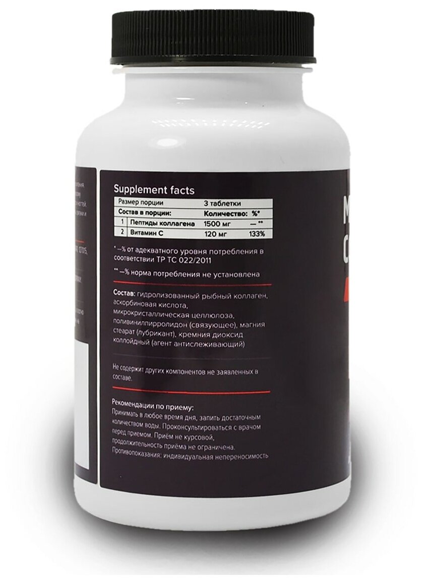 Recommendations for use: Take at any time of the day, Drink plenty of water, Consult a doctor before taking; composition: Hydrolyzed fish collagen, ascorbic acid, microcrystal