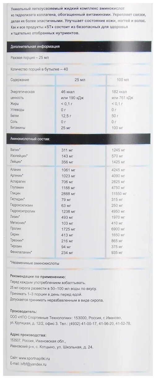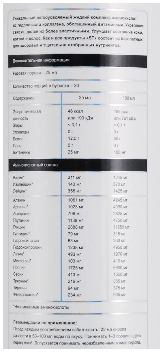 Store in a cool dry place; calorie content per 100 ml - 182 kcal; recommendations for use: shake before use, dissolve 25 ml of syrup in 50-100 ml of water to taste, take 1-3 servings a day before meals, allows