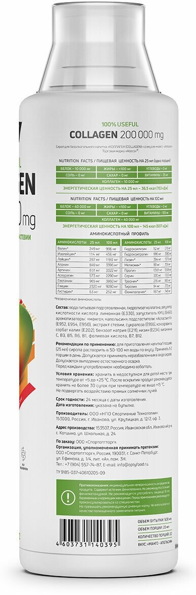 Atlecs Collagen Atlecs 500 ml orange mango
