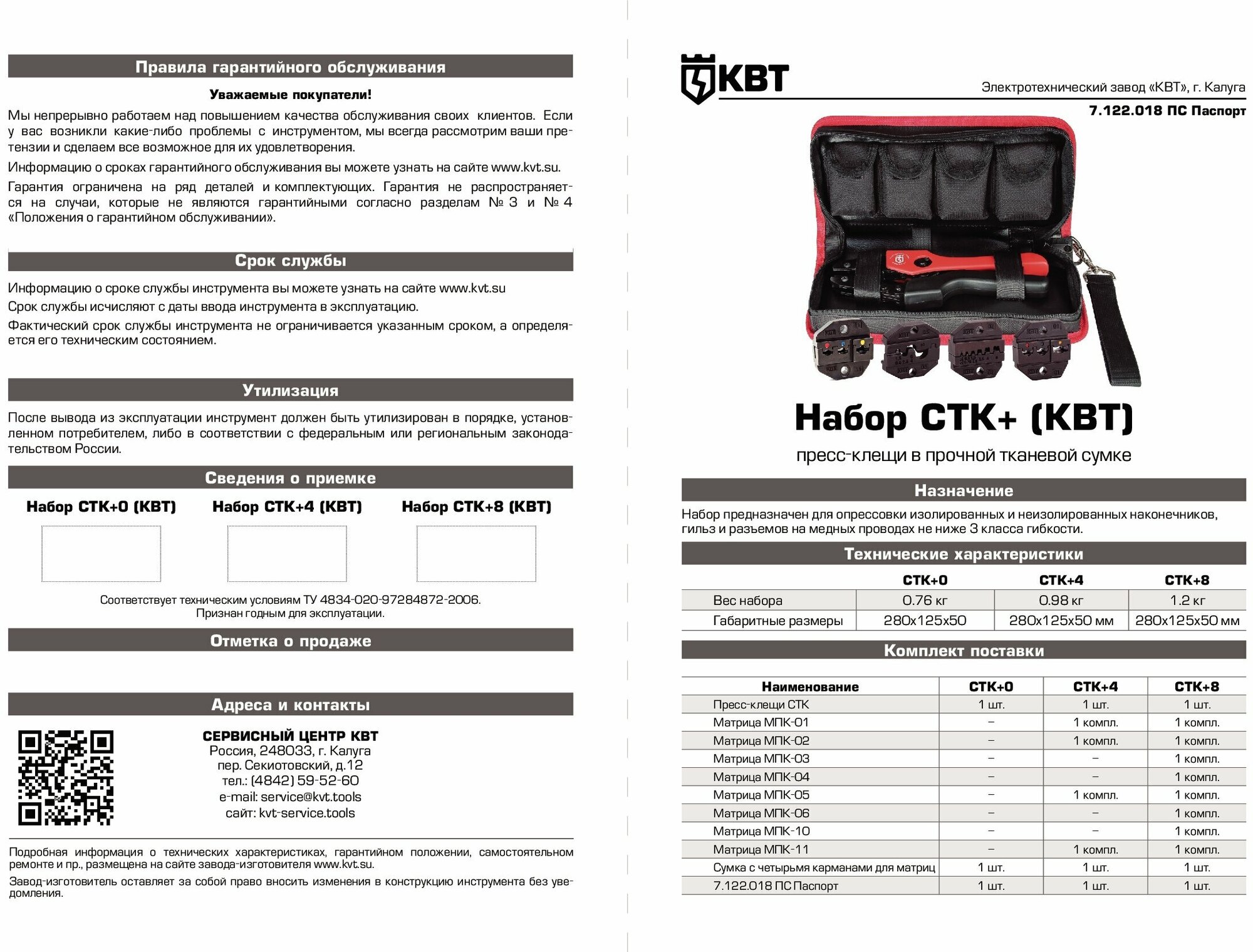 - tongs KBT STK 75907 with a set of dies