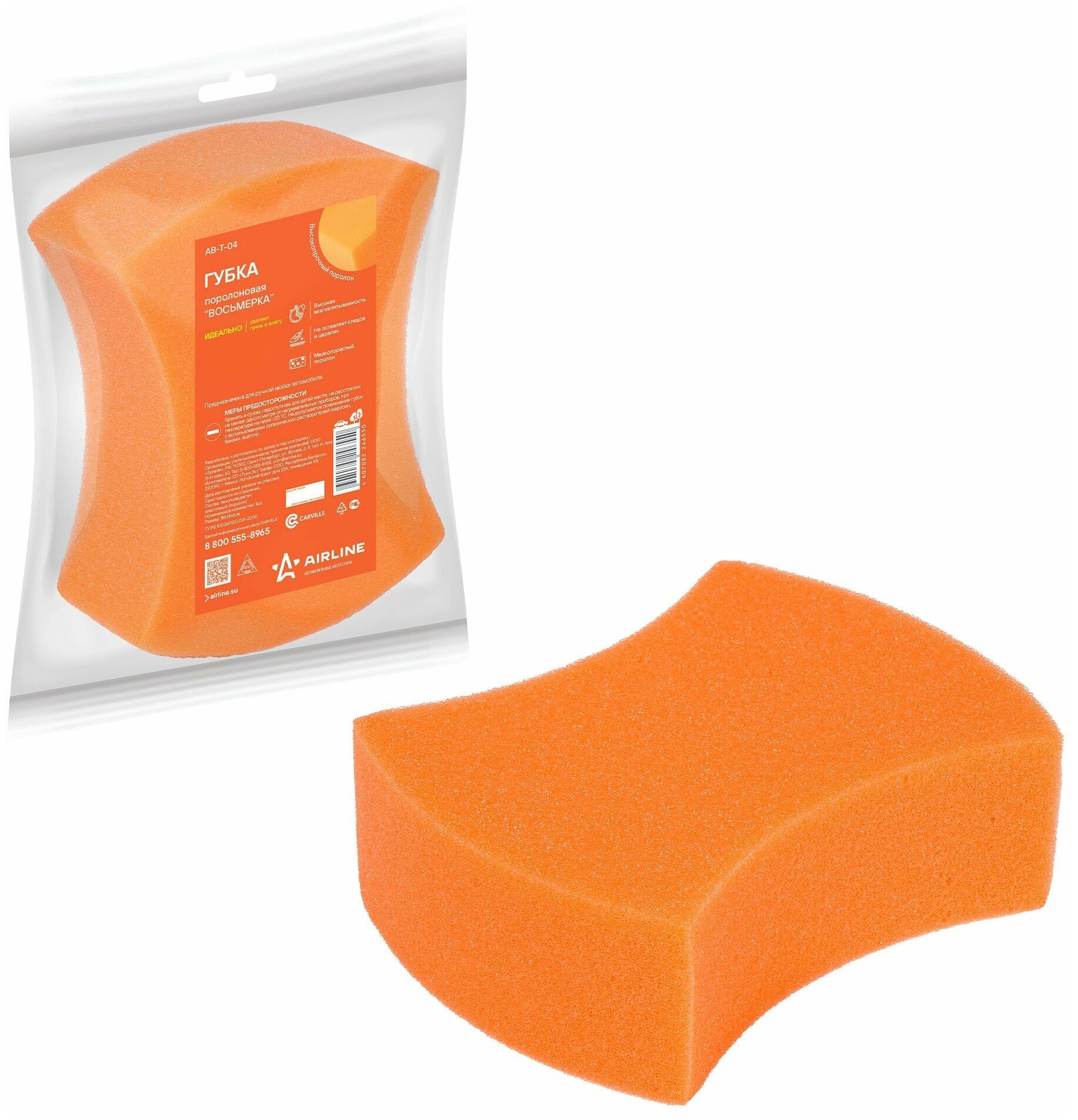 Type: sponge, material: foam rubber, purpose: surface cleaning, place of application: rims, body, glasses, headlights, length: 6 cm, width: 18 cm