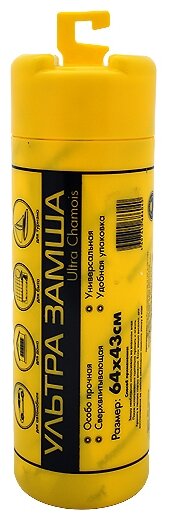 Type: cloth, material: artificial suede, purpose: moisture absorption, surface cleaning, place of application: body, glasses, lights, in a tube, length: 64 cm, width: 43 cm