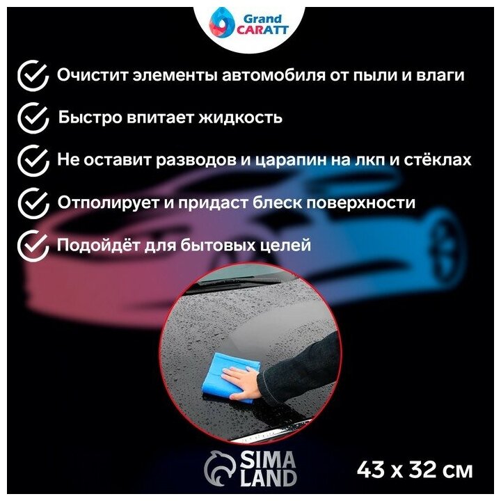 Type: cloth, material: artificial suede, purpose: moisture absorption, surface cleaning, place of application: body, in a tube, length: 43 cm, width: 32 cm
