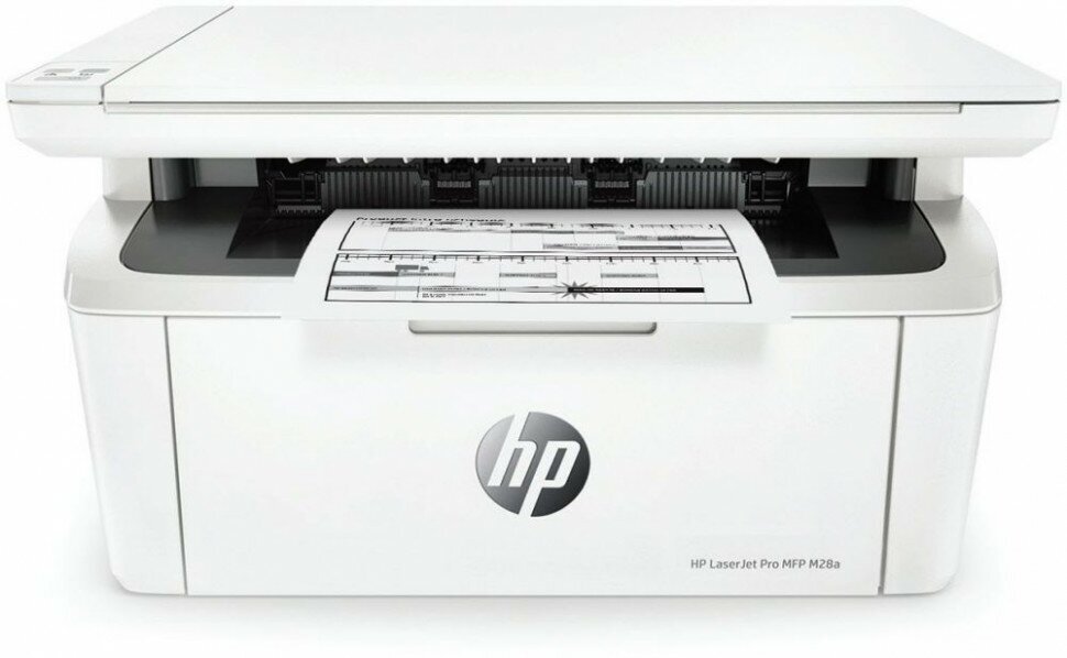 HP LaserJet Pro M28a printer; preinstalled starter HP Original LaserJet Black Toner Cartridge 500 pages; getting started guide;