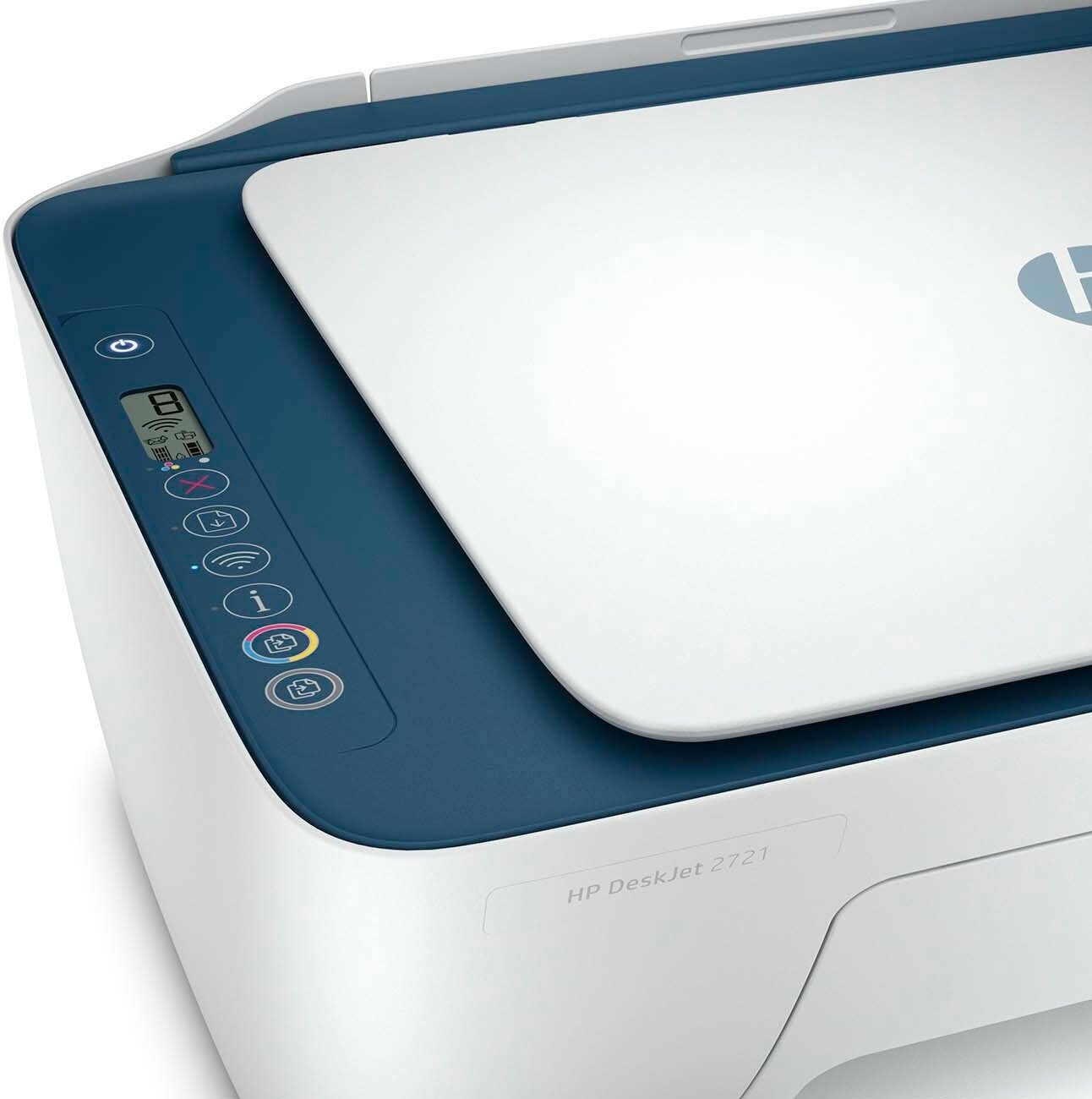 MFP HP DeskJet 2721; HP 305 starter black cartridge; HP 305 starter tri-color cartridge; leaflet with regulatory requirements; installation guide; reference guide; power cable