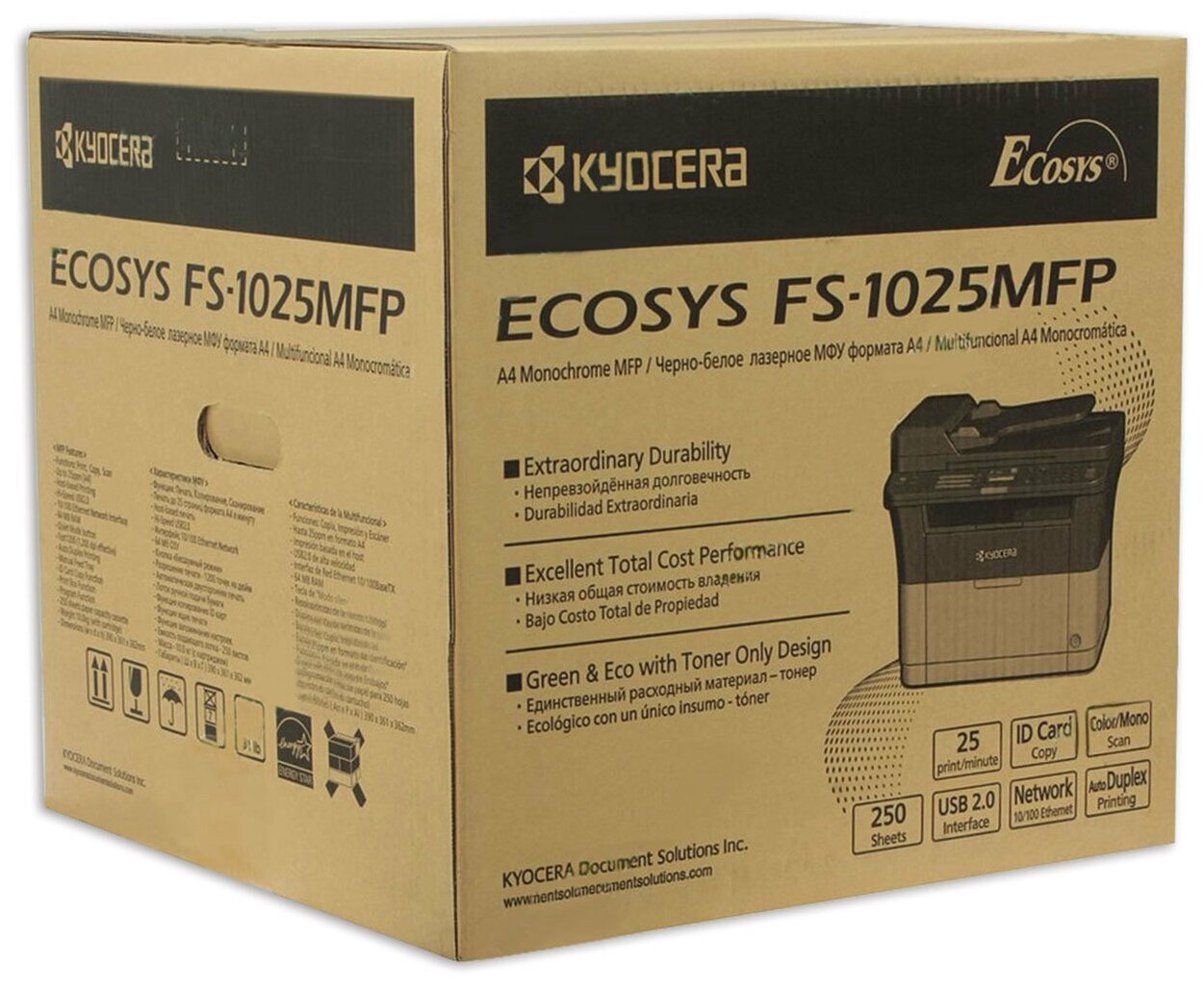 MFP laser KYOCERA FS-1025MFP printer, scanner, copier, А4, 25 pages/min 20000 pages/month duplex, with/card, ADF, without USB cable
