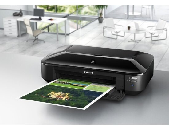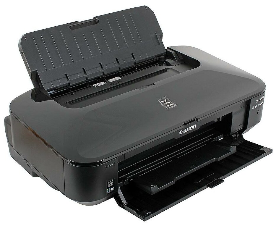 A3+ PIXMA iX6840 printer, installed PBK, BK, C, M, Y cartridges, power cable, installation CD, operating instructions and other documents