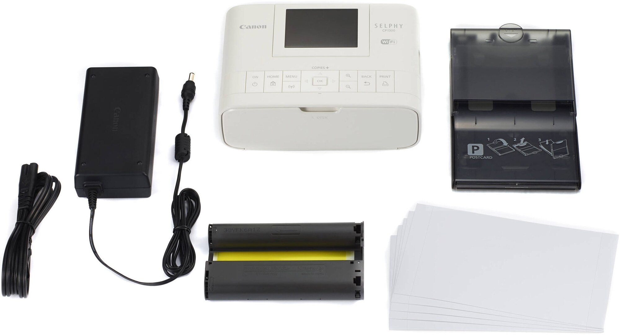 Printer, paper cassette PCP-CP400, power cord, software CD, documentation