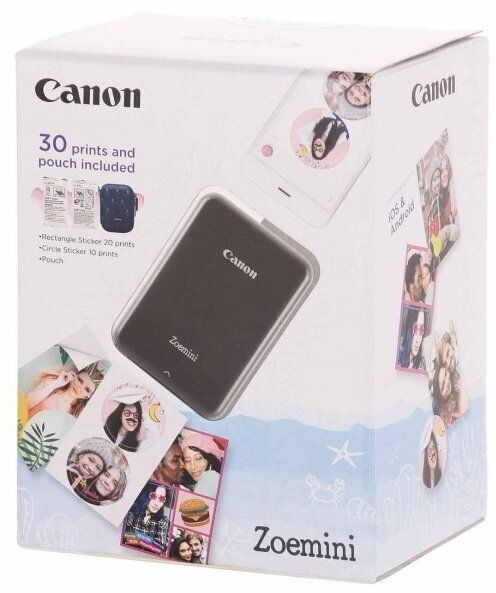 Printer, micro-USB cable, case, Zink photo paper 2*10 sheets, Circle Zink photo paper 10 sheets, documentation