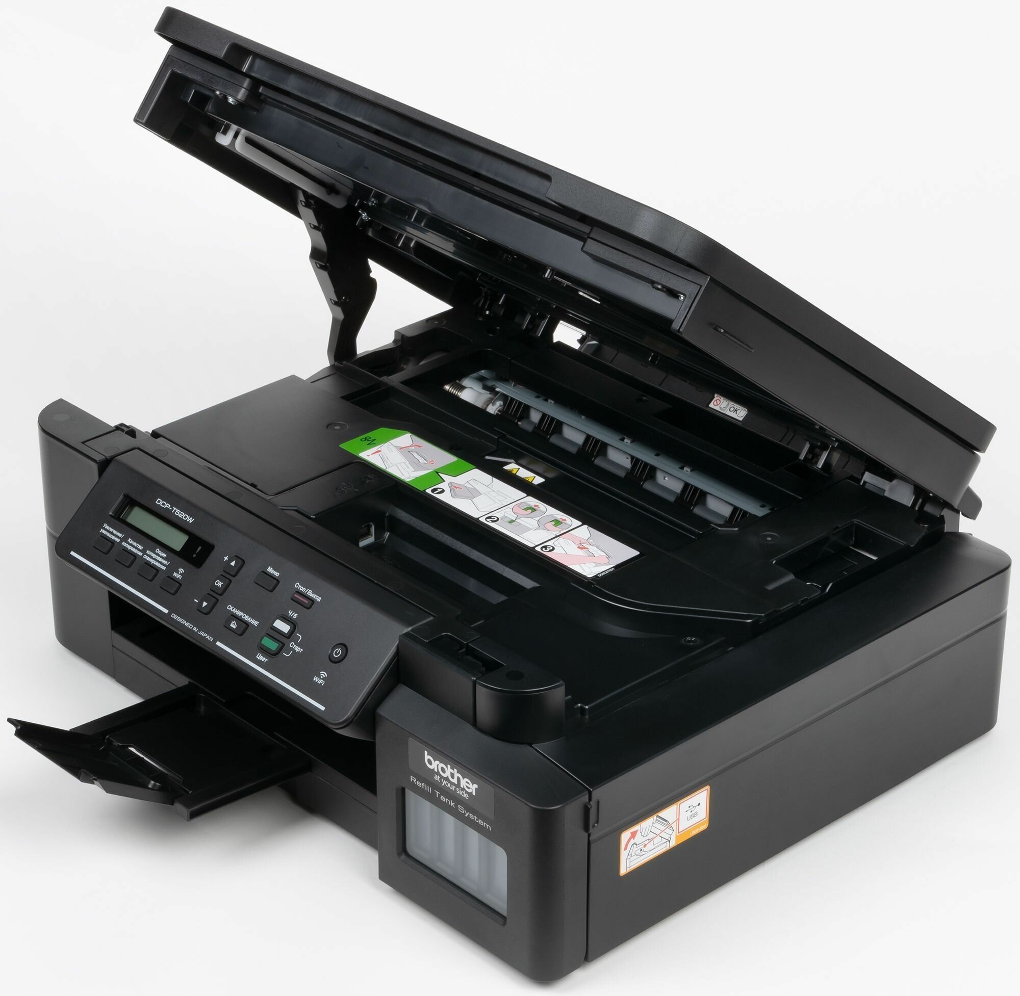 Device type: MFP, print color: color, print technology: piezoelectric inkjet, maximum format: A4, interfaces: USB, Wi-Fi, A4 b/w print speed: up to 20 ppm, pages per month: 1000, print functions