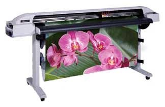 Printing on materials up to 12.5 mm thick. Compensation system for failed injectors. LCD display. Print speed 9.7 sq. m / h. Supply of roll and sheet material. Auto crop.