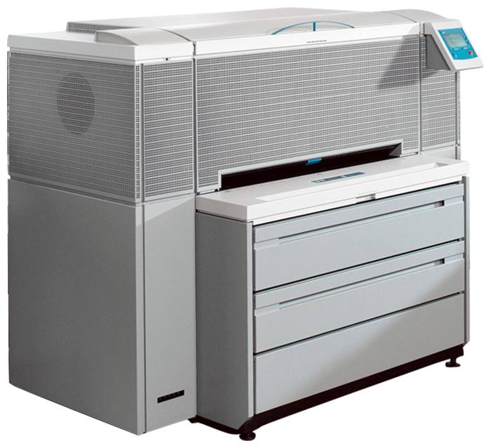 Modular multitasking system; Oce Copy Press printing technology; print speed 10 m/min. 8A0/min.; print formats A4 portrait - A0; maximum: 0.914x15 m; feed: 6 rolls + manual feed; two high speed hard drives
