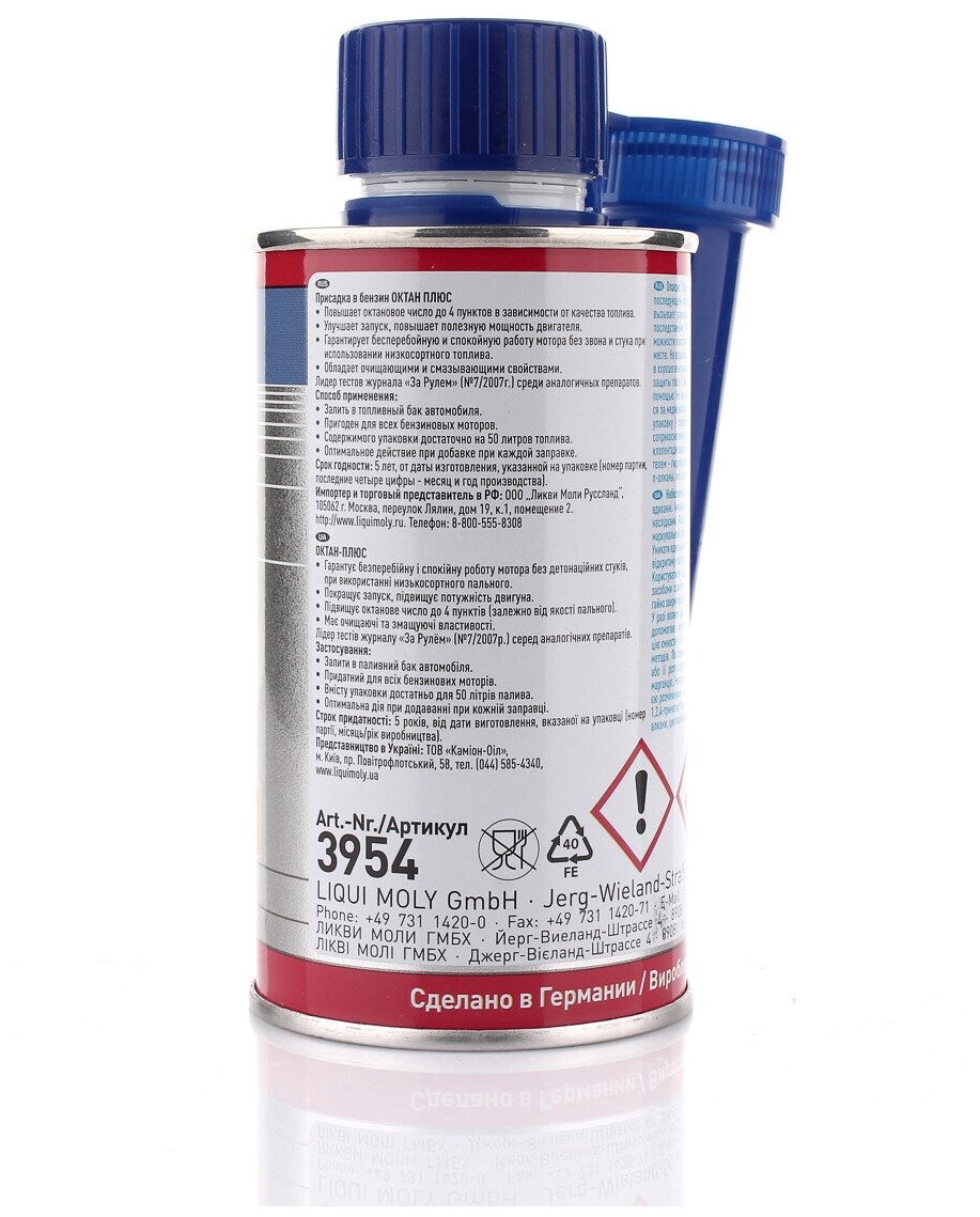 Means for increasing the octane number by 2 - 5.5 units. Prevents detonation in the engine. It is recommended when refueling at untested gas stations where low fuel quality is possible. An indispensable tool for travel