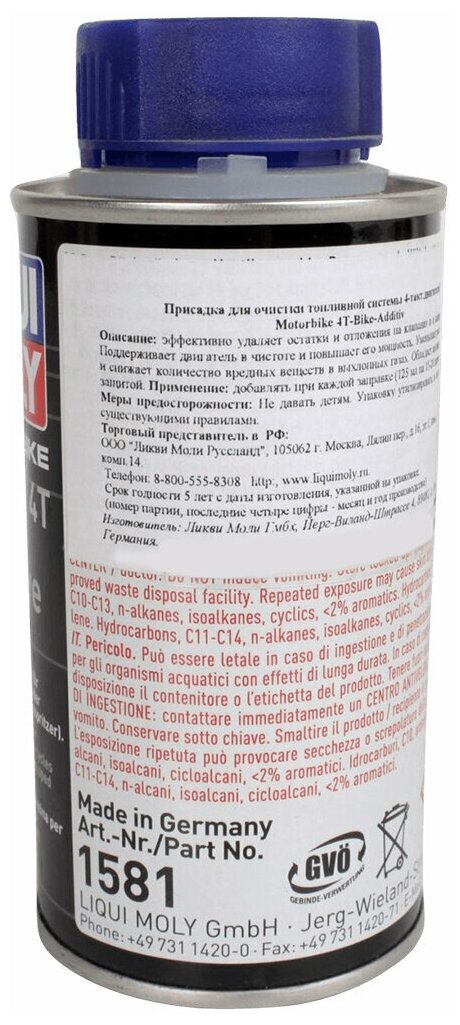 Type: additive, vehicle type: motorcycle, application: fuel system, additive specification: antioxidants