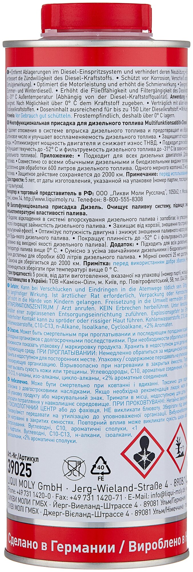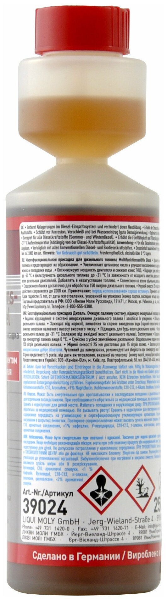 Contains antigel; improves filterability temperature; provides high lubrication reliability; excellent wear protection; increases the resource of the engine; increases the efficiency of the engine; reduces the amount of harmful