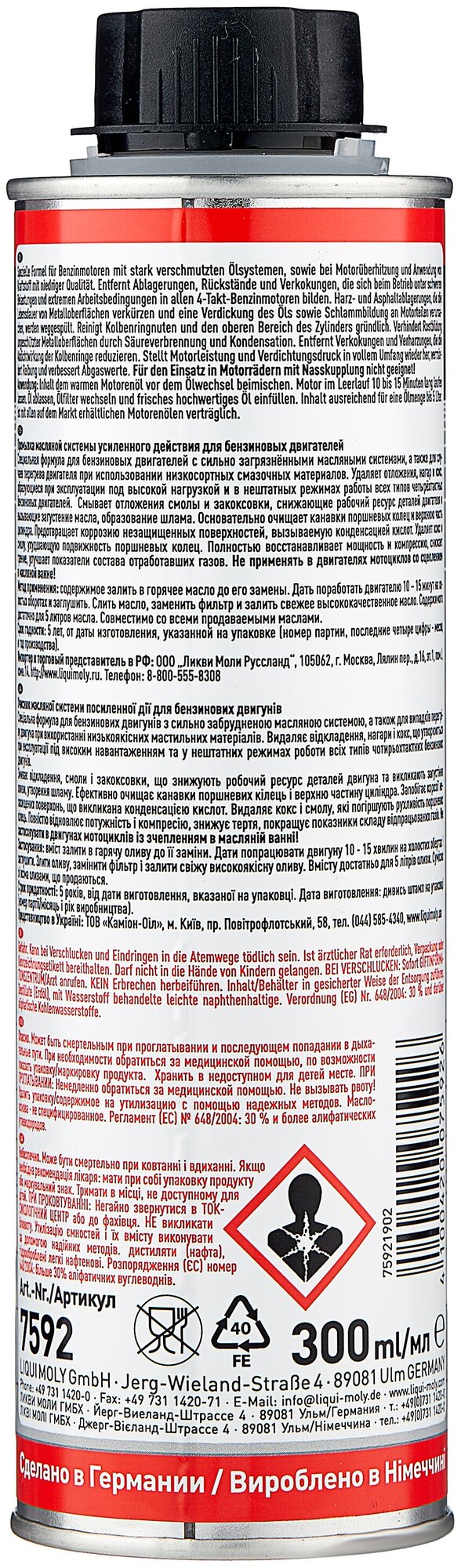 Add to warmed oil before changing at the rate of 300 ml of additive per 5 liters of engine oil; start the engine and let it idle for 10 minutes. merged