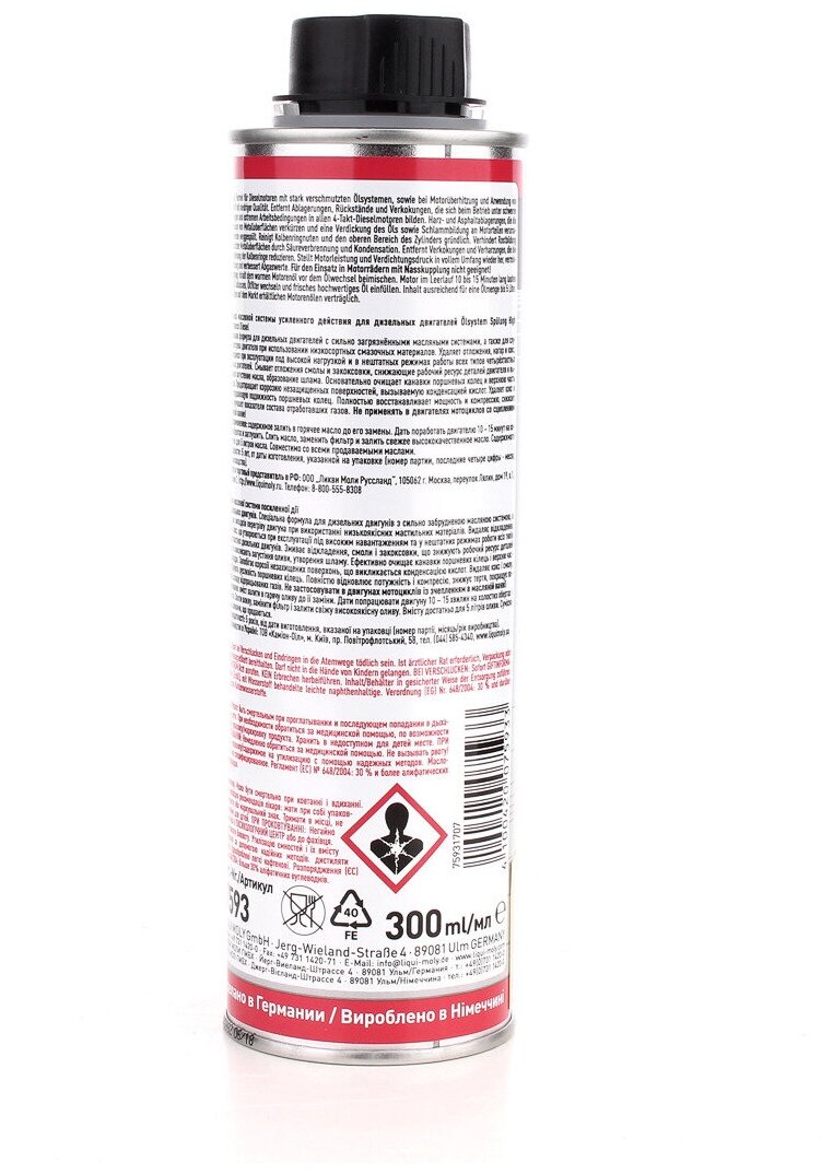 Add to warmed oil before changing at the rate of 300 ml of additive per 5 liters of engine oil; start the engine and let it idle for 10 minutes. merged