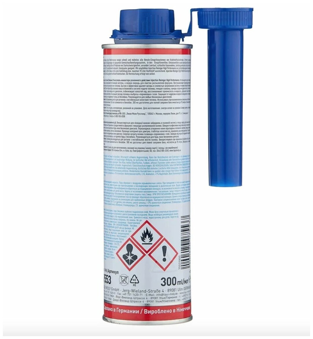 Njection Reiniger High Performance cleans all fuel injection systems quickly and easily from characteristic deposits. Completely removes coking and deposits in the fuel mixture preparation system: in nozzles, on intake valves, as well as