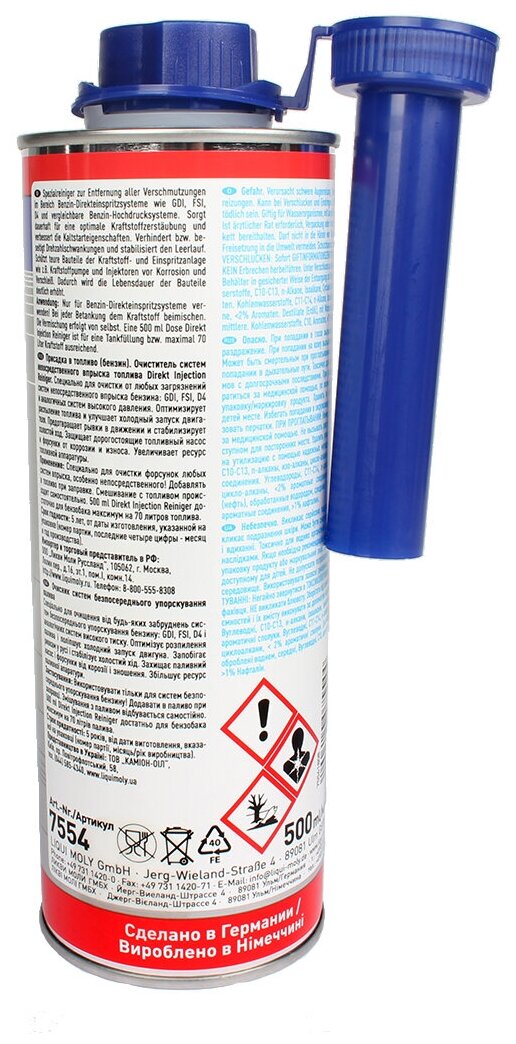 For all injection systems as a nozzle cleaner. Apply at regular maintenance or as needed. 500 ml is sufficient for 70 liters of fuel. Mixing with fuel occurs independently.