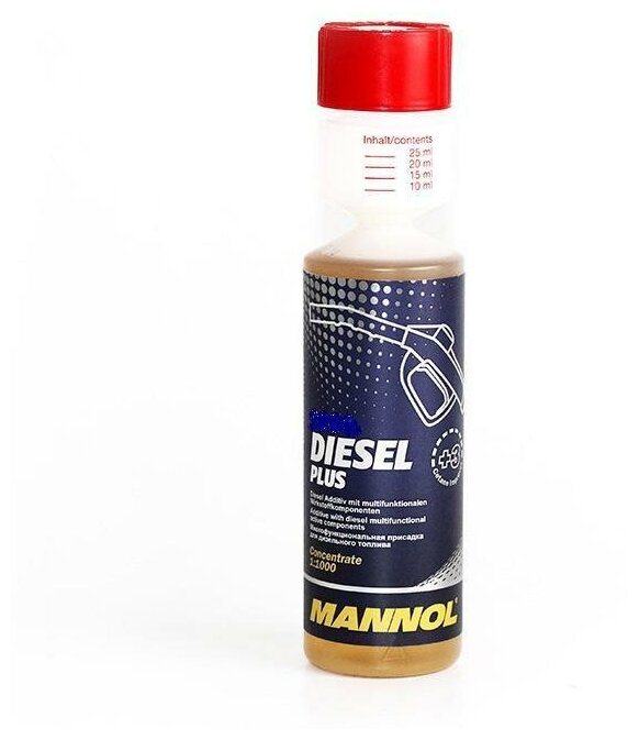 Add Diesel Plus to the fuel tank before each refueling at the rate of 1:1000 250 ml of Diesel Plus per 250 liters of diesel fuel.
