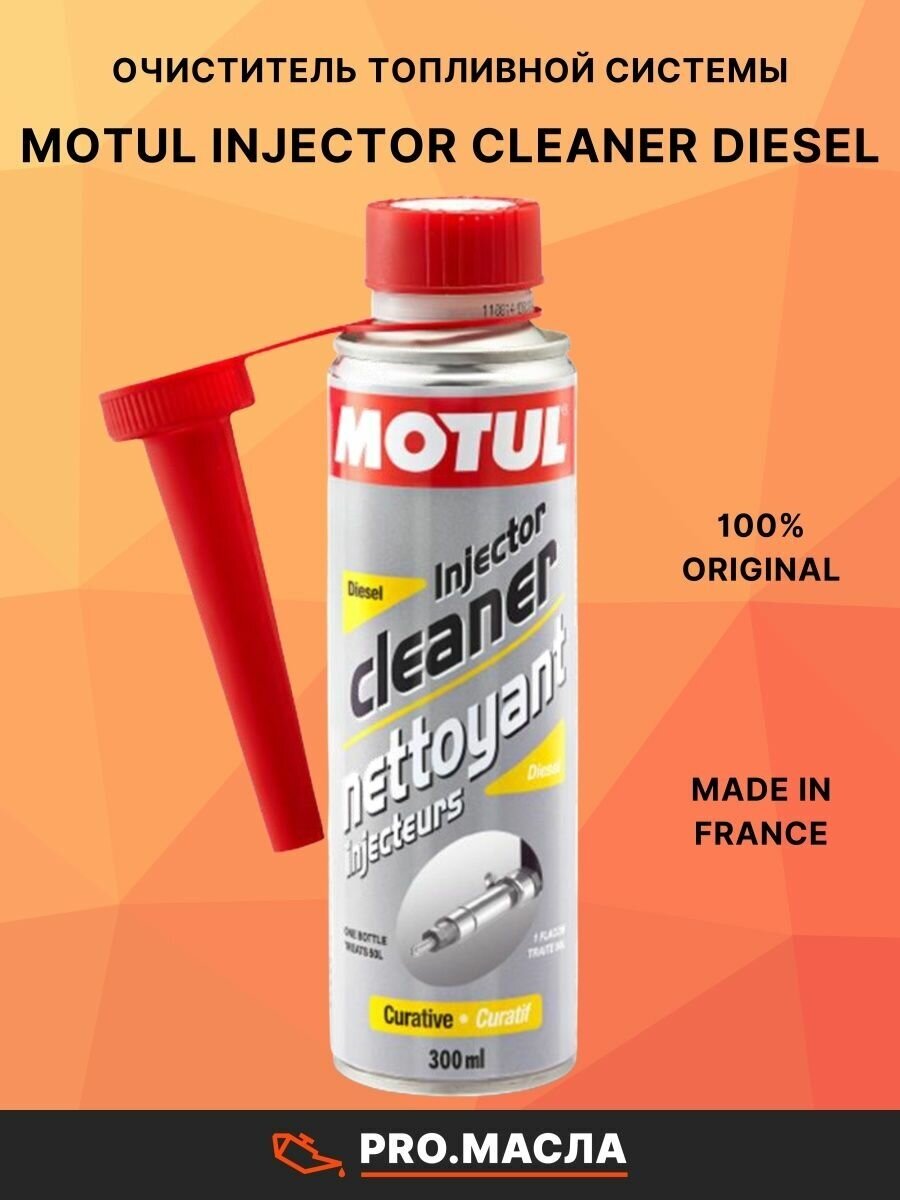 Pour the contents of one bottle of MOTUL INJECTOR CLEANER DIESEL into the fuel tank before refueling. The fuel system will be completely cleaned: from the fuel tank to the injector and combustion chamber. 300 ml is calculated for the fuel tank volume