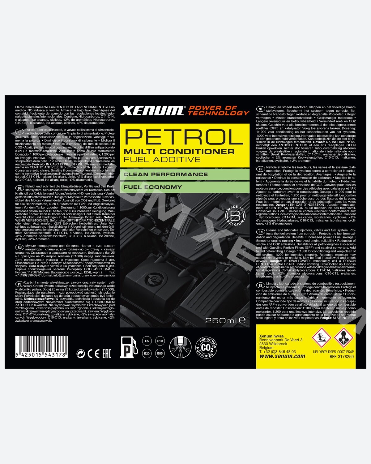 For regular and preventive use. Suitable for all gasoline engines, including the latest generation engines with direct injection and aftertreatment.