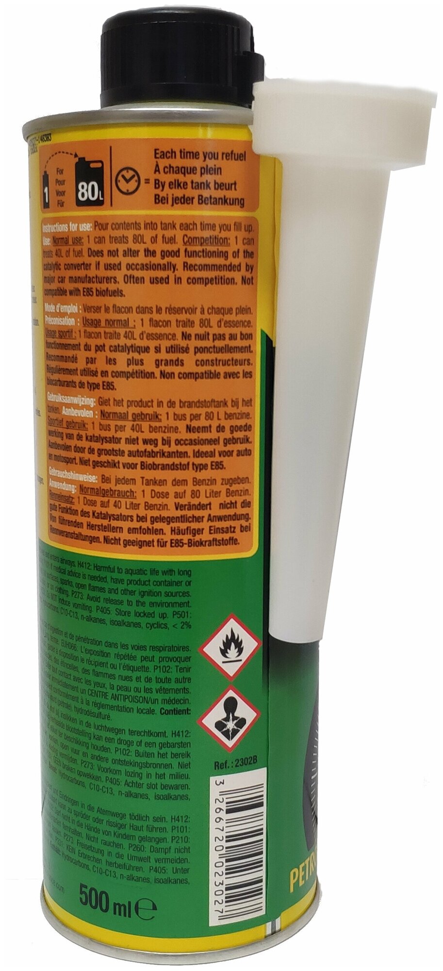 Type: additive, vehicle type: passenger cars, application: fuel system, additive specification: anti-knock