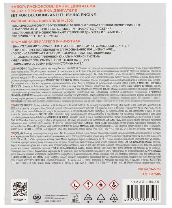 Engine decoking fluid; 5-minute engine flush; syringe; a tube; underhood sticker; instruction